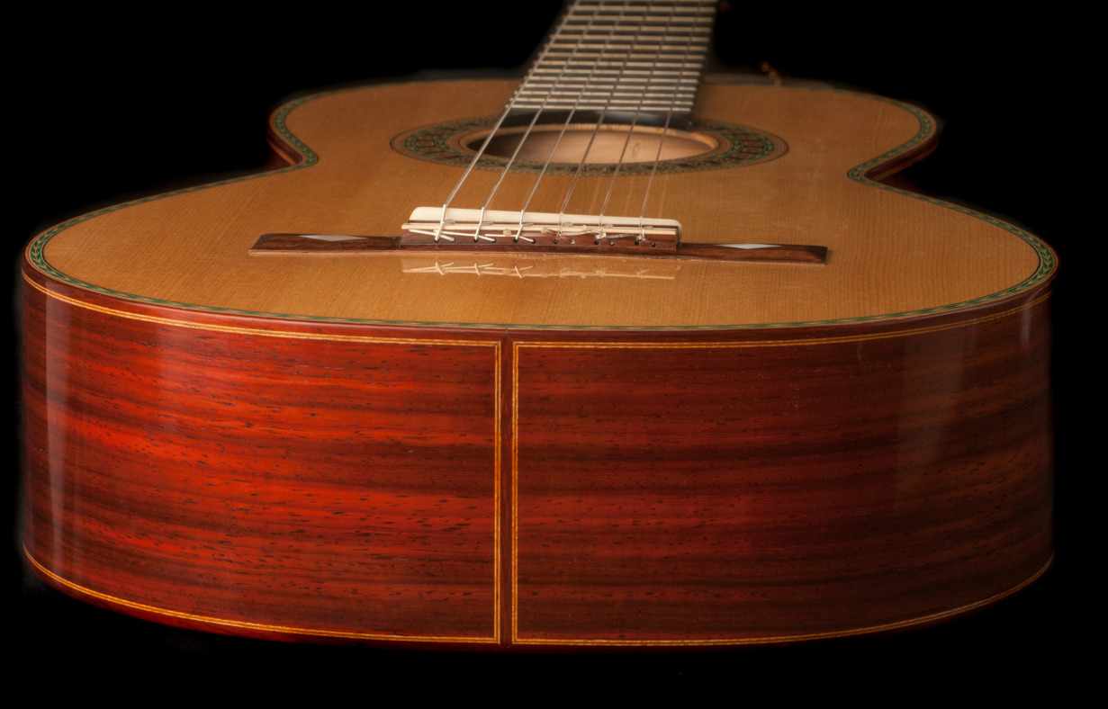 The timbre will depend on the blend of woods that will be combined, for these types of guitar I only use European Spruce or exceptionally Engelmann spruce to try and maintain the type of sound that would have been heard originally.