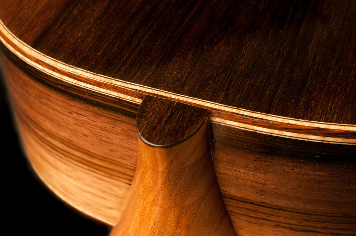 The guitar in the images is one made for a customer, I used Spruce for the top and Brazilian Rosewood for the back and sides. The binding and purfling have Jacaranda (Caroba)from the North of Argentina.