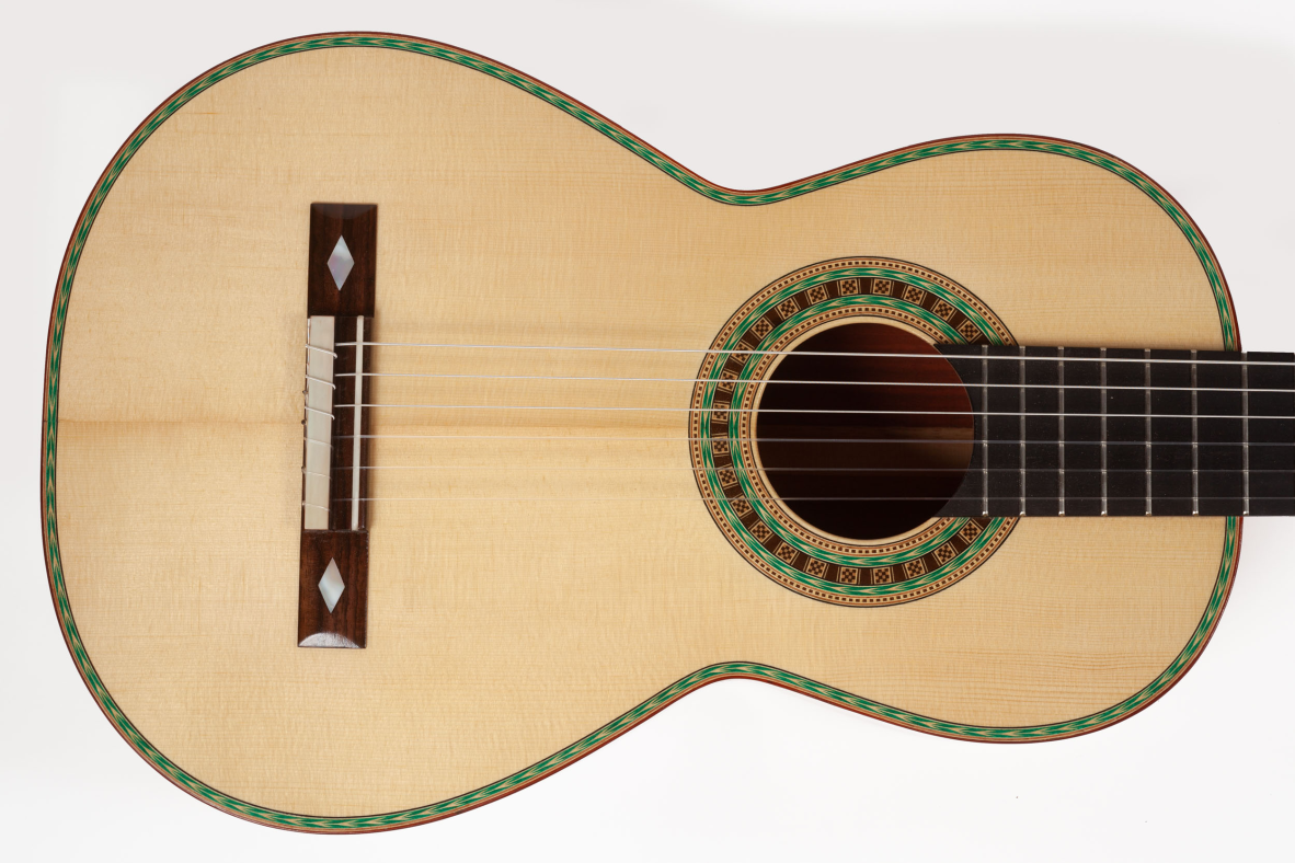 The timbre will depend on the blend of woods that will be combined, for these types of guitar I only use European Spruce or exceptionally Engelmann spruce to try and maintain the type of sound that would have been heard originally.